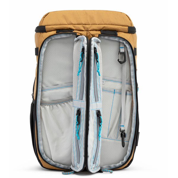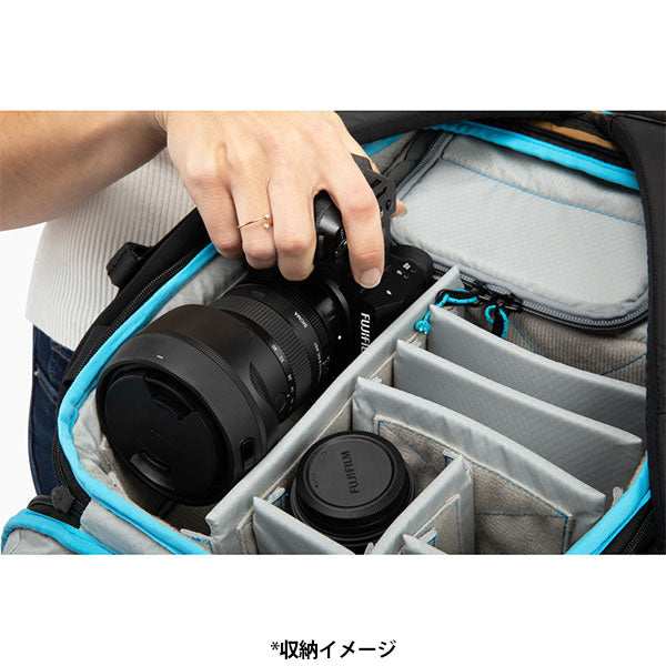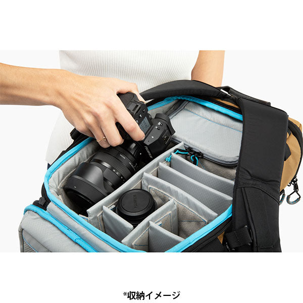 ●上部コンパートメントはジッパーで開閉でき、すぐに取り出したい機材やアイテムの収納ができます