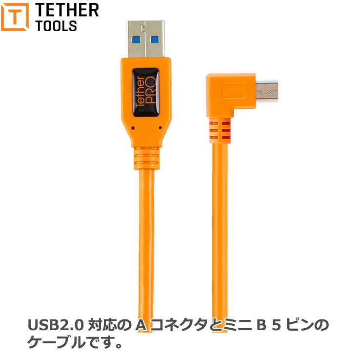 テザーツールズ CU51RT02-ORG テザープロ ライト アングル アダプター USB 2.0 to USB 2.0 mini-B 5-pin