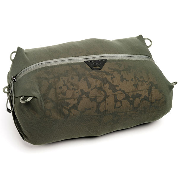 ポーチ上部のコードフックループに別売りのピークデザイン製ストラップやフラットフックストラップ(発売予定)を取り付けるだけで、超軽量なスリングバッグに早変わり。必需品だけをまとめてそのまま持ち出せるので、旅先でのちょっとした外出時に便利です。