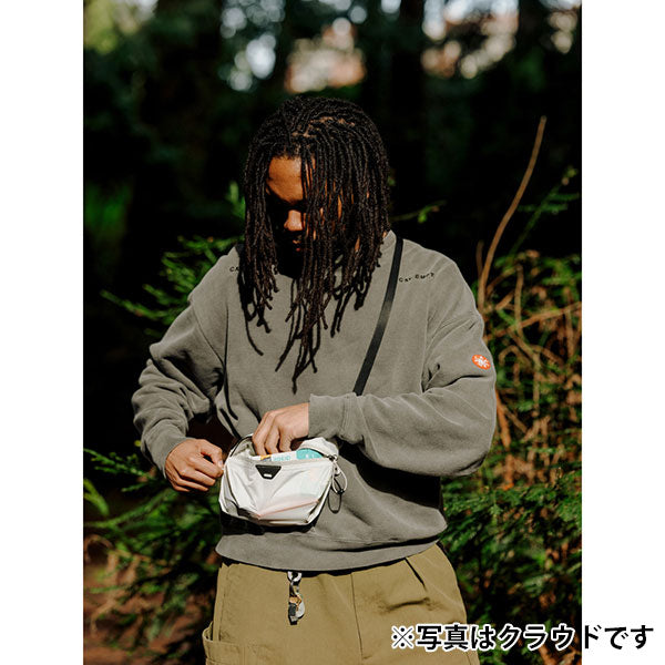 ポーチ上部のコードフックループに別売りのピークデザイン製ストラップやフラットフックストラップ(発売予定)を取り付けるだけで、超軽量なスリングバッグに早変わり。必需品だけをまとめてそのまま持ち出せるので、旅先でのちょっとした外出時に便利です。