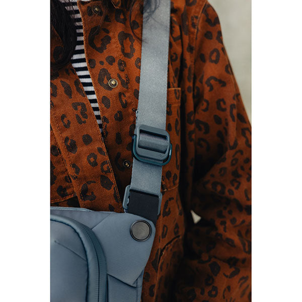 クロスボディストラップの取り付け位置を変更することで、ウエストバッグとしても使用できます。