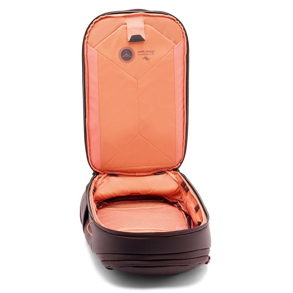 頑丈で拡張性があり、機能性、美しいフォルムにもこだわったピークデザインのトラベルバックパック30L。週末の旅行やデイリーユースにも適したサイズで、航空機内への持ち込みも可能です。メインコンパートメントへはバックパネルを大きく開いてアクセスでき、パッキングツールと組み合わせることで荷物に合わせてさまざまなカスタマイズができます。表面のジッパーを開くことでバッグの容量を調節ができ、最大容量にすることでカメラキューブ(別売)を収納できます。また、パッド入りのヒップベルト(別売)を使用することで、荷物をいっぱいに詰め込んだときや長時間の移動をする際の身体への負担を軽減します。