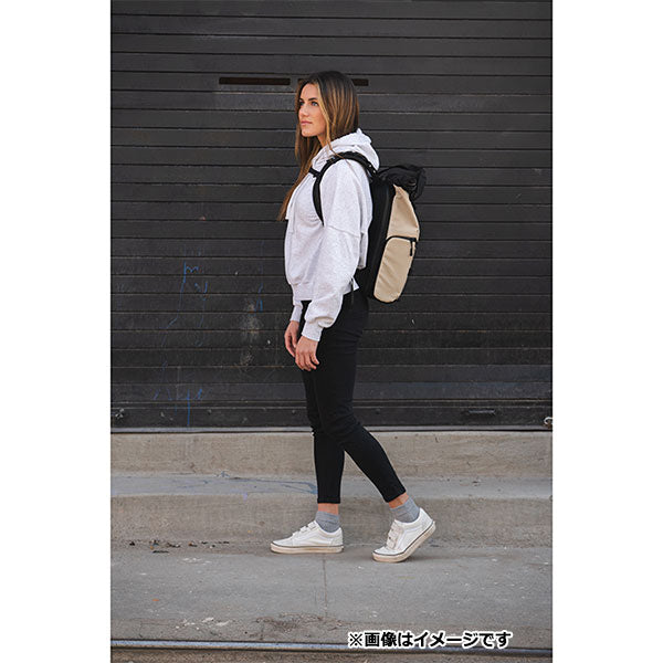●ロールトップ部分を広げて容量を11L から16L まで拡張でき、ジャケットやレンズなど収納量に合わせて調節できます。