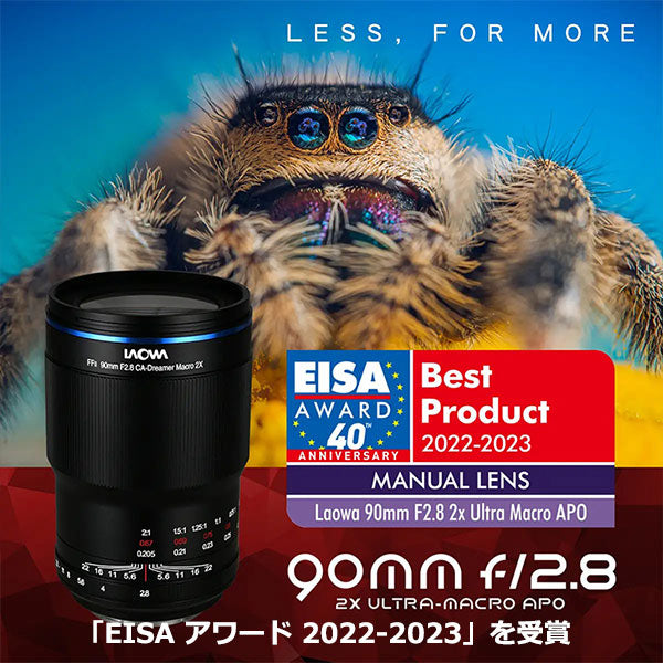 ●LAOWA 90mm F2.8 2x Ultra Macro APOは、非常にコンパクトかつ軽量なフルフレームミラーレスカメラ用マクロレンズです。