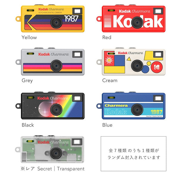 KODAK CHARMERAは、写真撮影と動画撮影の両方に対応した小型デジタルカメラです。写真モードでは、カスタマイズされたKODAKフレーム、ヴィンテージフィルター、日付スタンプが利用可能です。全7種類のレトロスタイルがブラインドボックスで販売されており、コレクションや友人との楽しみが広がります!