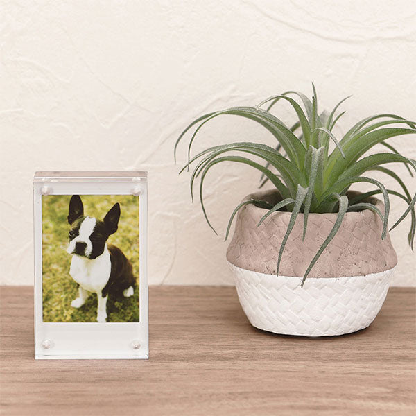 重厚感のあるデザインとアクリル板の透明感が写真をぐっと引き立て、机上のインテリアとして使えるほか、アイドルやアーティストなど“推し”とのツーショットチェキを飾る推し活用フォトフレームにもおすすめです