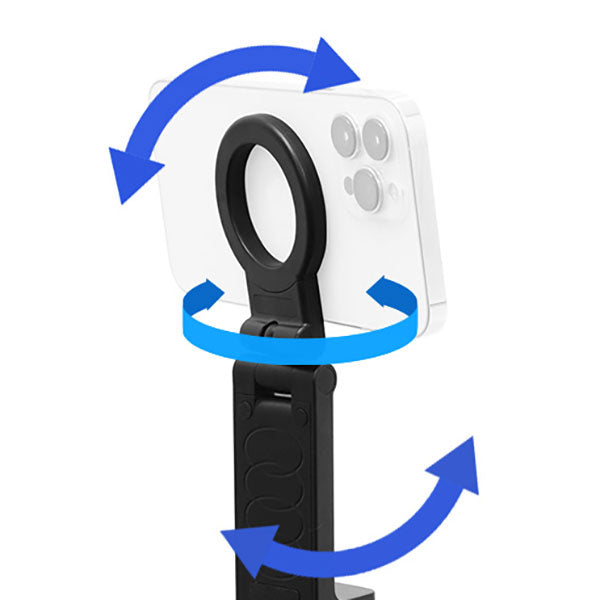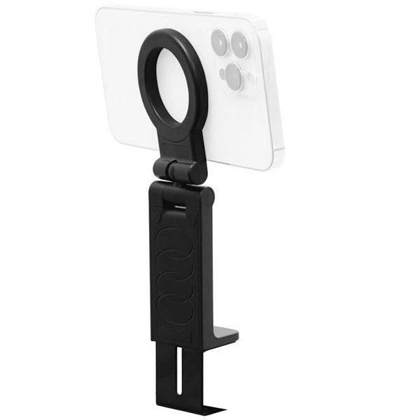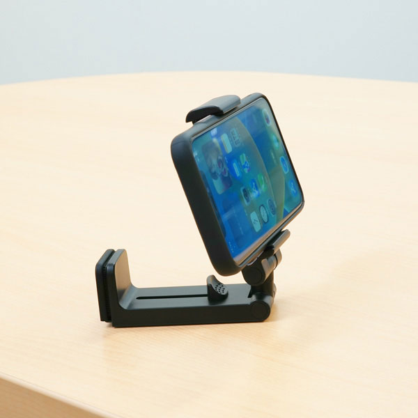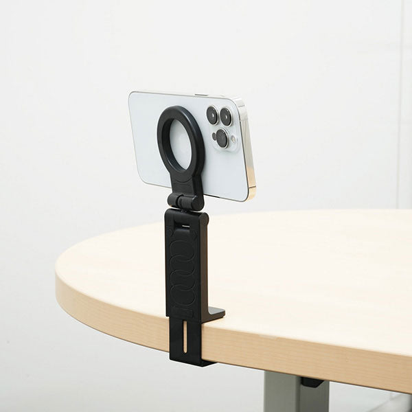 ばね式のクリップがついたスマートフォンスタンド(マグセーフ対応)です。挟む、置くなどしてさまざまな用途に使用いただけます
