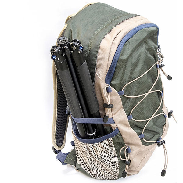 反転時の三脚の太さを市販のペットポトルと同程度としたため、写真のようなペットポトル収納ポケットのあるリュックサックに、エアリーシリーズ三脚を収納することができます。