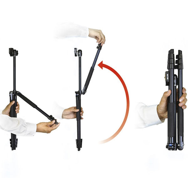 雲台の形状を変更し、脚の間に雲台が収まるようにすることで、よりスリムな収納スタイルを実現しました。