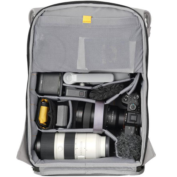 ミラーレスカメラ1~2台に加え、複数のレンズやアクセサリーを効率的に収納できます。