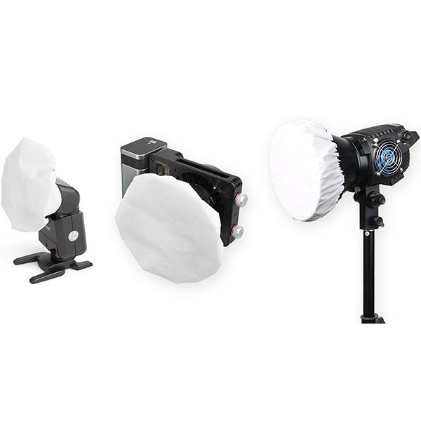 ストロボやLEDライトの光をやわらかくする、かぶせ式のディフューザー