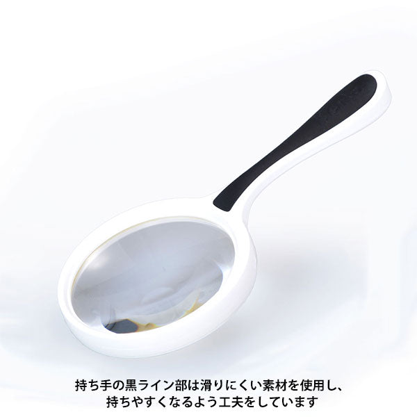 重さわずか20g。白と黒のツートンカラーでシンプルデザインの手持ちルーペです。