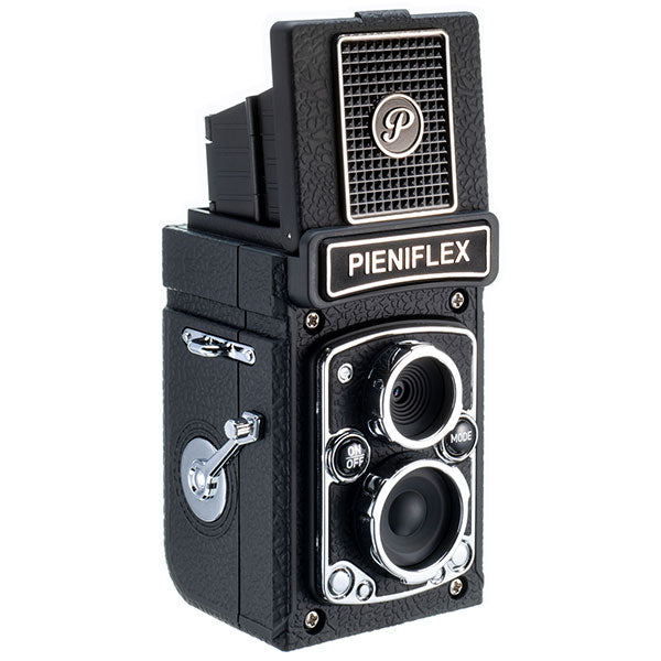 - ●PIENIFLEX M(ピエニフレックス M)は、二眼レフカメラのように上蓋を開けて液晶モニターを上から覗きながら撮影できるトイデジタルカメラです
