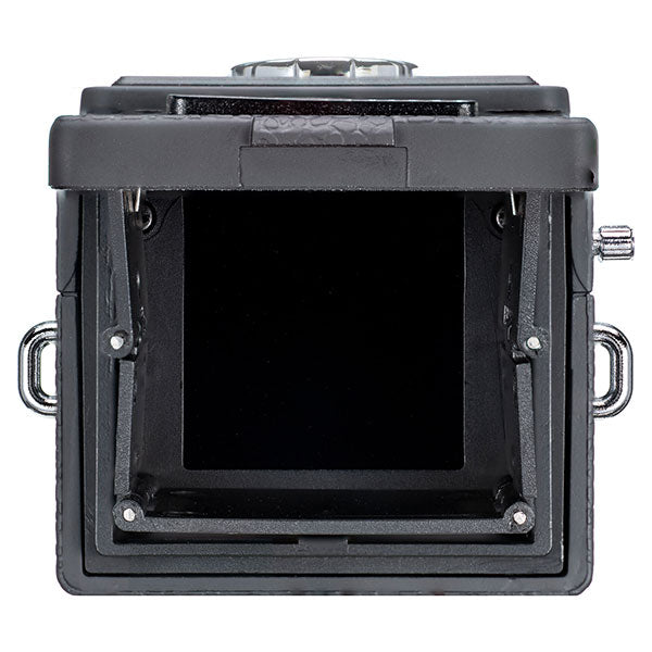 手の中にすっぽりとおさまるコンパクトなサイズでありながら、本格的な二眼レフのような外観デザイン
