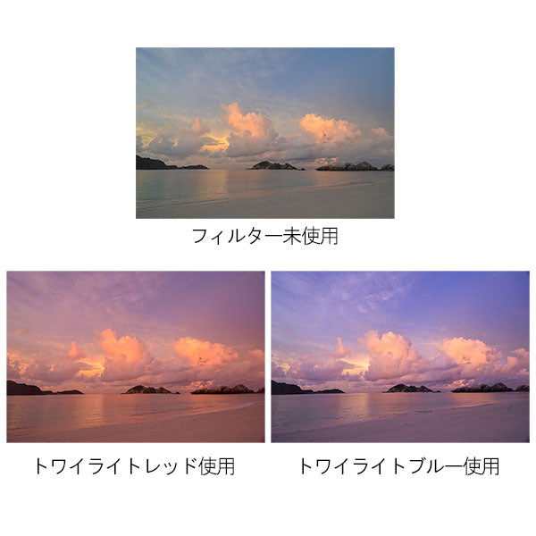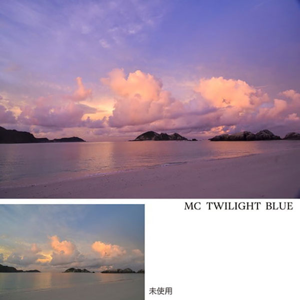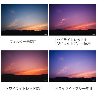 「トワイライトフィルター」は夕焼け・朝焼けの空のグラデーションのバランスを絶妙に変化させ、印象深い色彩にします。