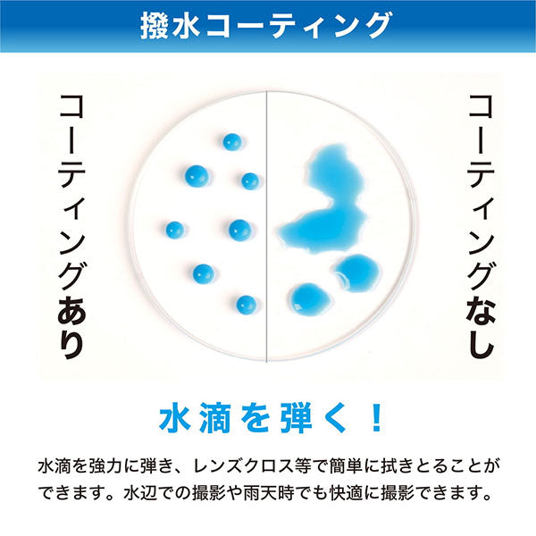 ●水滴や汚れを強力にはじく撥水・撥油機能を持ちながらも、デジタルマルチコートIIIにより超低反射を実現し、レンズ性能を最大限に発揮します