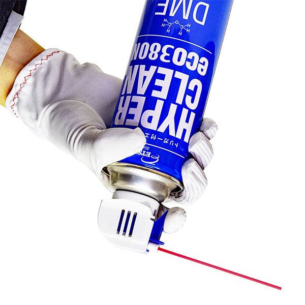 機器類の内部など密閉された空間に直接吹き込むのは厳禁です。スイッチやモーターのスパークや静電気により引火の恐れがあります。