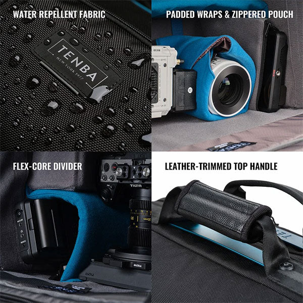 ・ベースプレート、マイク、マットボックスなどを装着したままの業務用カメラも収納でき、撮影現場での作業効率を高めます