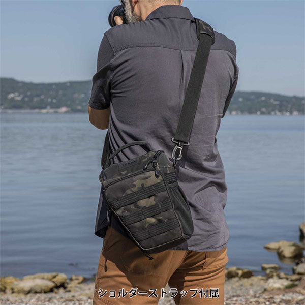 ・付属のショルダーストラップまたはベルトに取り付けて持ち運ぶことができます。また、アクシス20/24/32Lバックパックのヒップベルトに取り付けることも可能です。