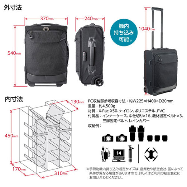 [機内持ち込みサイズ ローラーバッグ カメラバッグ 撥水 防水 HAKUBA] - [主な仕様]