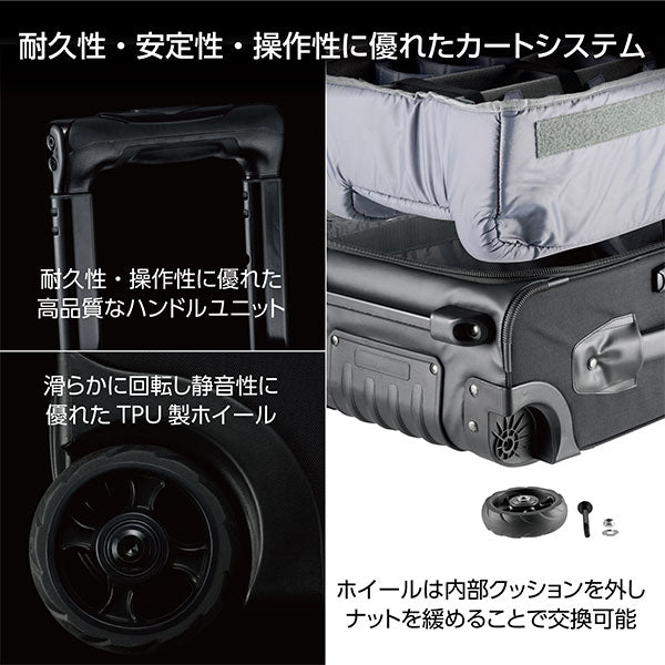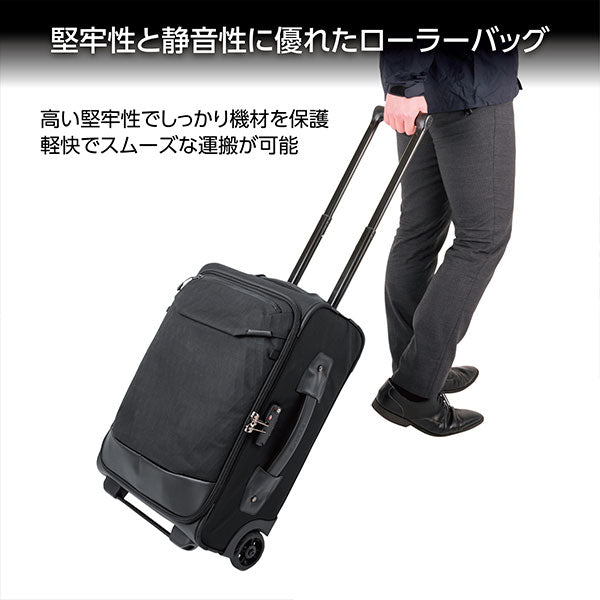 ・高い堅牢性でしっかり機材を保護しながら、軽快でスムーズな運搬ができる静音性に優れたローラーバッグ。機内持ち込み可能なサイズです。