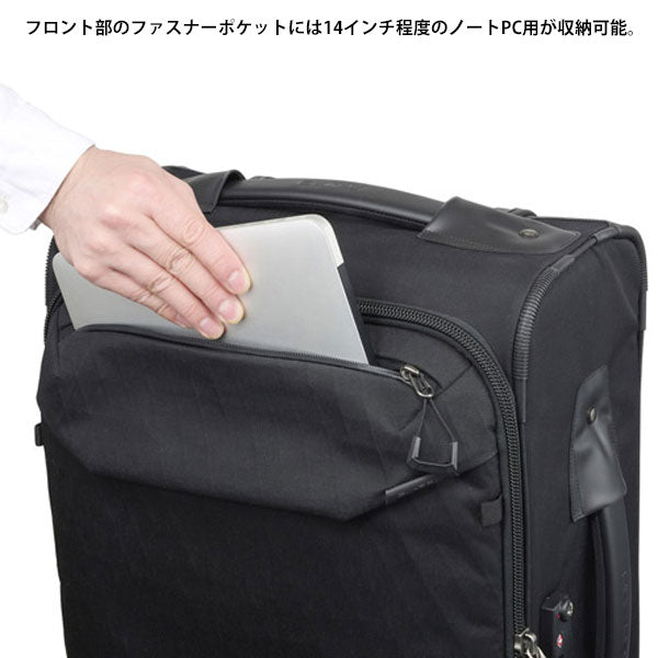 ・フロント部の大型のファスナーポケット内部に 14 インチ程度のノートPC用のスリーブを備えています。