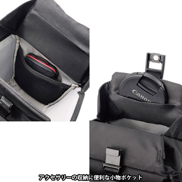 ・標準レンズを装着した一眼カメラをコンパクトに持ち運べます。コンパクトな外観ながら、無駄の無いレイアウト設計により機材を効率的に収納できます。