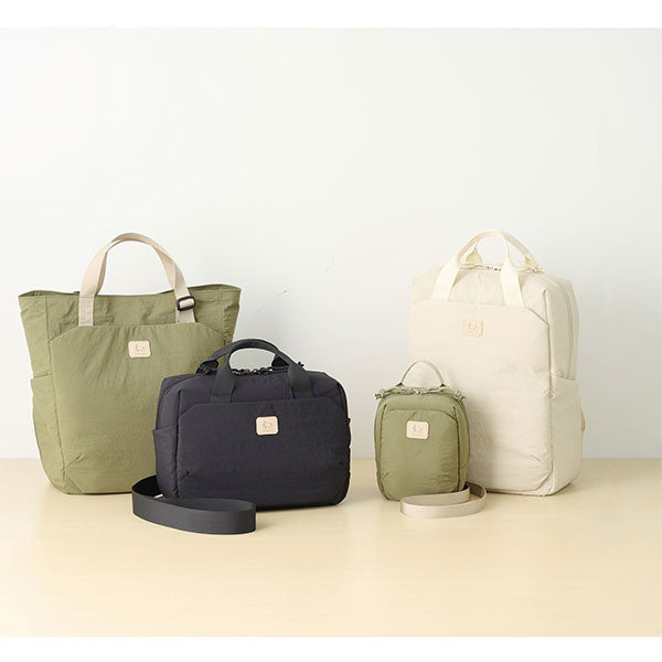 コットンのようなナチュラルな風合いと、ナイロンの優れた機能性を兼ね備えたタスランナイロン生地を採用したコンパクトなカメラショルダーバッグです