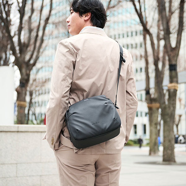 端正なフォルムに高い機能性と収納力を備えたカメラショルダーバッグ