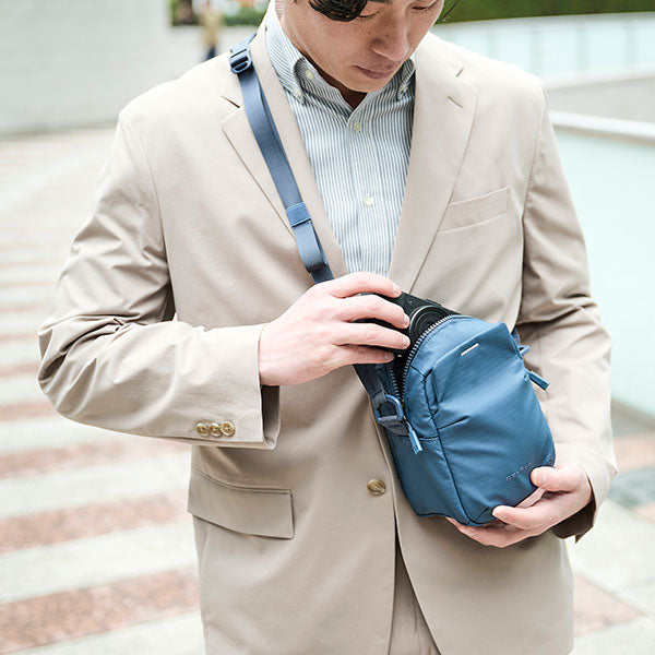 コンパクトカメラや小型ミラーレス一眼を、スマートフォンや財布などの必需品と一緒に持ち運ぶのに最適なサイズ感です。
