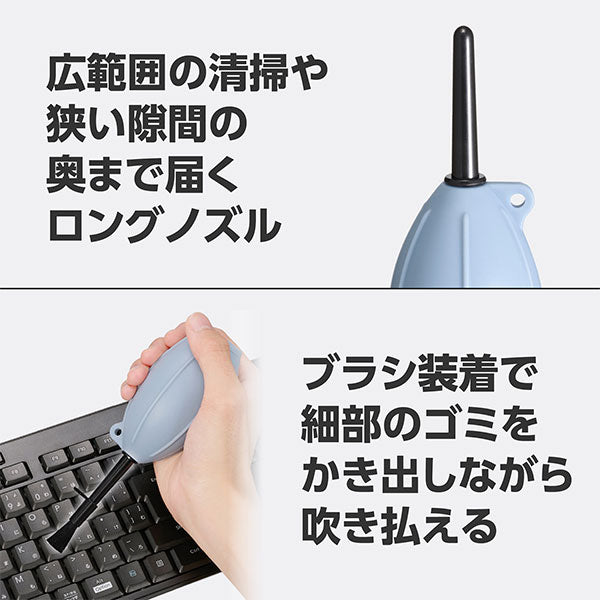 ブロアーの先端を細かくコントロールできるので、カメラボディの溝、レンズマウントの接点、PCキーボードの隙間など、細部のホコリやゴミを的確に吹き飛ばします