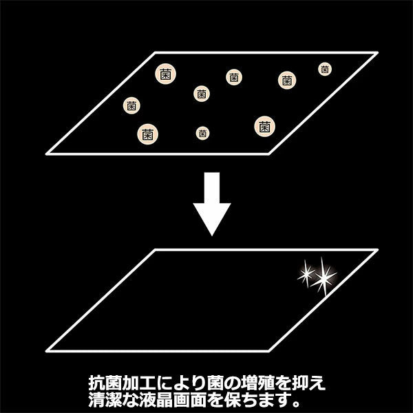 ●表面には撥水、指紋防止、抗菌、ハードコート加工、粘着面はバブルレスタイプを採用していま
