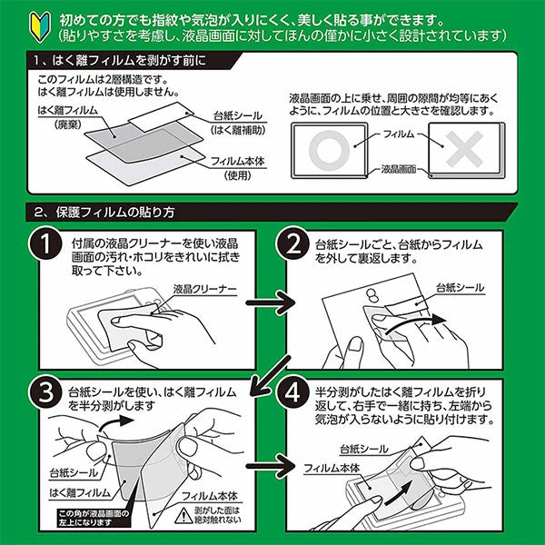 ●自己吸着性により、フィルムを画面に置くだけで自然に貼りつくため貼り付けが簡単です
