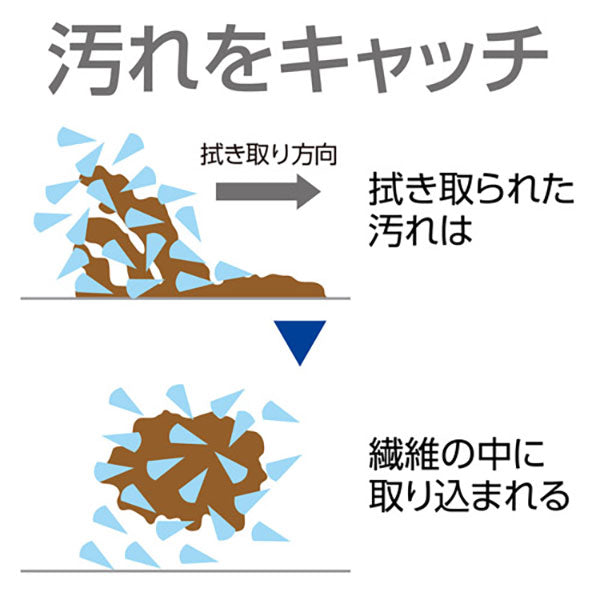 ●ランダムに配列された超極細繊維が密着し、拭くだけでミクロのゴミだけでなく油膜汚れも取り込み残しません