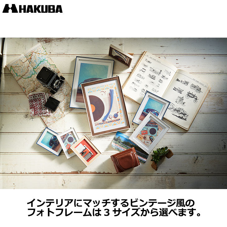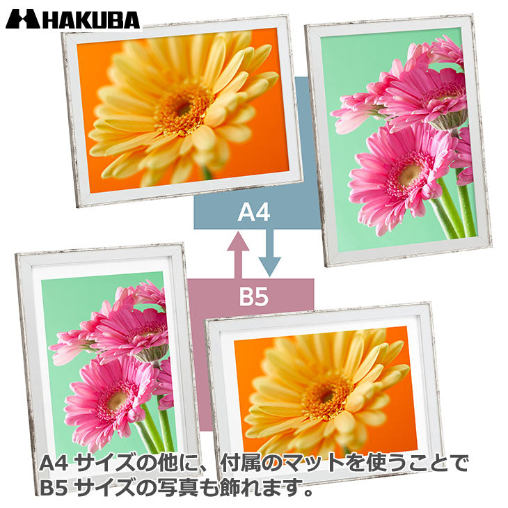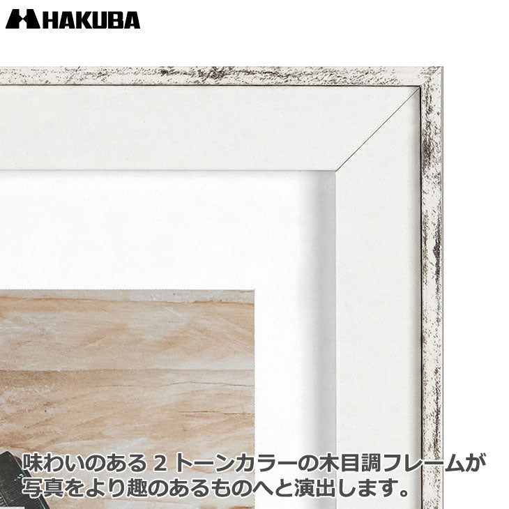 [HAKUBA FWRPWWA4 写真立て フォトスタンド 木製 額縁 インテリア雑貨 A4 B5 吊り紐付属 壁掛け スタンド付属 卓上 縦 横 木目調 ヴィンテージ ビンテージ おしゃれ ツートン ツートンカラー バイカラー]
