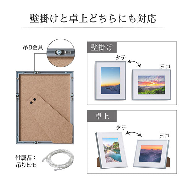 [HAKUBA HFA03SV2L フォトフレーム フォトスタンド 写真立て 額縁 アルミフレーム インテリア雑貨 2L 吊り紐付属 壁掛け スタンド付属 卓上 縦 横 シンプル モダン おしゃれ 日本製]