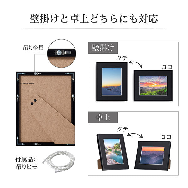 [HAKUBA HFA03BK2L フォトフレーム フォトスタンド 写真立て 額縁 アルミフレーム インテリア雑貨 2L 吊り紐付属 壁掛け スタンド付属 卓上 縦 横 シンプル モダン おしゃれ 日本製]