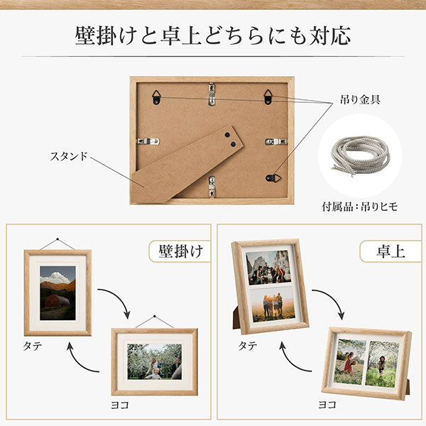 [HAKUBA FWARL2NT フォトスタンド 写真立て 木製 額縁 インテリア雑貨 L Lサイズ 2L KG はがきサイズ ポストカードサイズ 多面 多窓 2枚 吊り紐付属 壁掛け スタンド付属 卓上 縦 横 軽量 割れにくい シンプル おしゃれ ナチュラル かわいい]