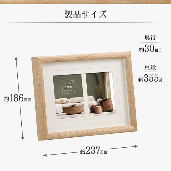 ハクバ FWAR-L2NT フォトフレーム 木製 Arco L×2面/KGハガキ/2Lサイズ ナチュラル