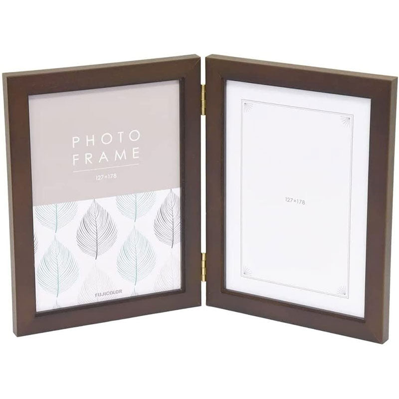 フジカラー 4612TK 木製フォトスタンド 2Lサイズ 2面 ブラウン