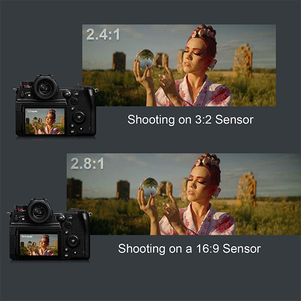 1.6倍のワイドスクイズファクターが特徴で、3:2センサーモードに設定すると2.4:1のアスペクト比の画像を生成