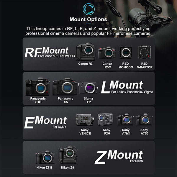 フルフレーム対応-E/RF/L/ZマウントのSIRUI 100mmアナモルフィックレンズは、一般的なミラーレスカメラやシネマカメラに最適