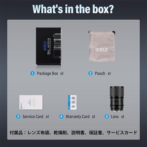 付属品:レンズ布袋、乾燥剤、説明書、保証書、サービスカード