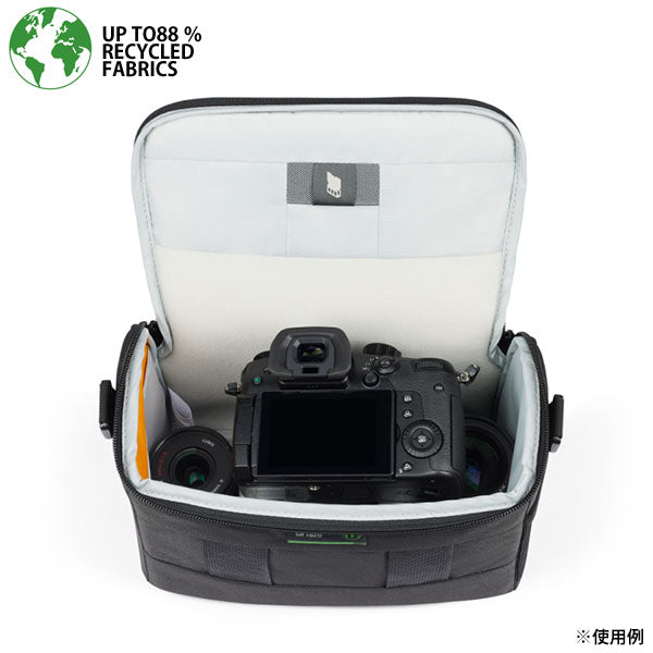 ・リサイクル外装生地はPU コーティングを施され、防水性が高く、水滴などから機材を保護します。